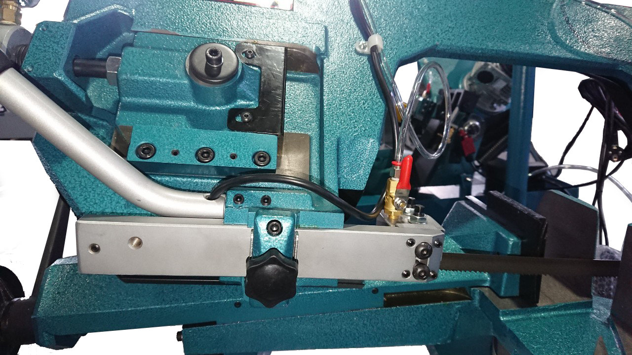 A robust coolant system has coolant ports at the front of the cut to lubricate the saw blade teeth before they enter the cut and then a port at the back of the cut to rinse the teeth of swarf before returning to enter the cut again. This arrangement ensures a blade life that pays.