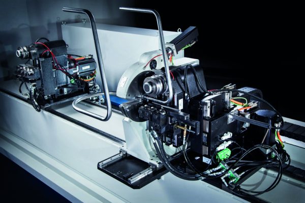 Twin-head 8-axis CNC tube bender with synchronized operation, optional punching, and IMS software for precision bending.