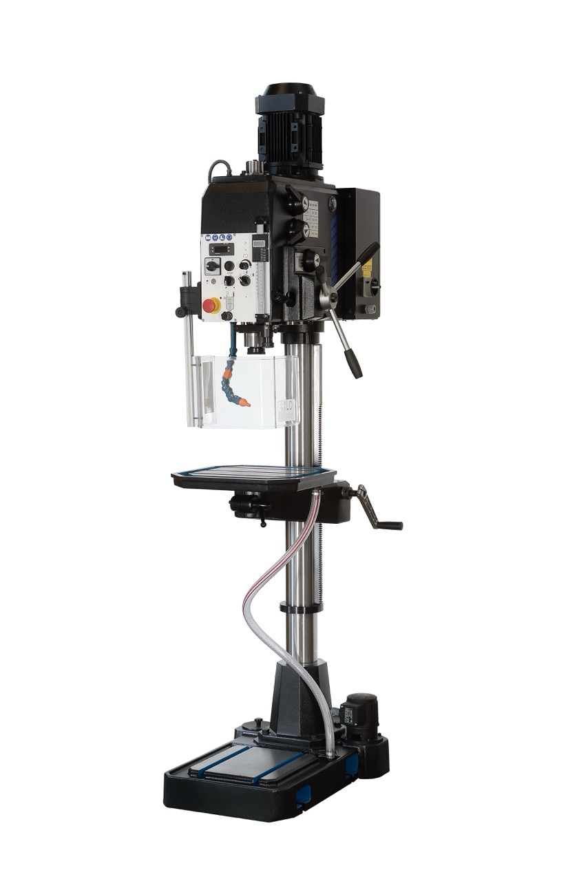 Engineered for industrial use, the TS.30 features hardened and ground steel gears for long life and stable power transfer. With a 120 mm spindle stroke and 1.1–1.4 kW motor, it offers smooth, precise performance across eight speeds (65–3060 rpm). Its heavy-duty cast iron base, column, and headstock ensure machine rigidity. Safety systems include a micro-switch drill guard, emergency stop, and separate low-voltage control cabinet. The fixed worktable with T-slots supports secure part clamping for repeatable operations, making the TS.30 an excellent solution for high-accuracy manual drilling.