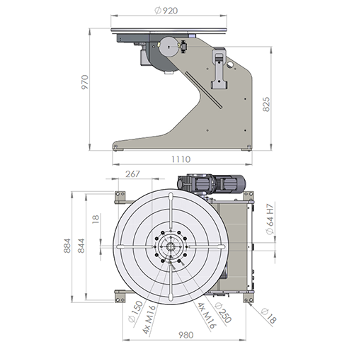 D653 • 650 Kg Capacity • 0.075 to 3.26 RPM • 970mm Working Height • 920mm Faceplate • 47.5mm Through Hole